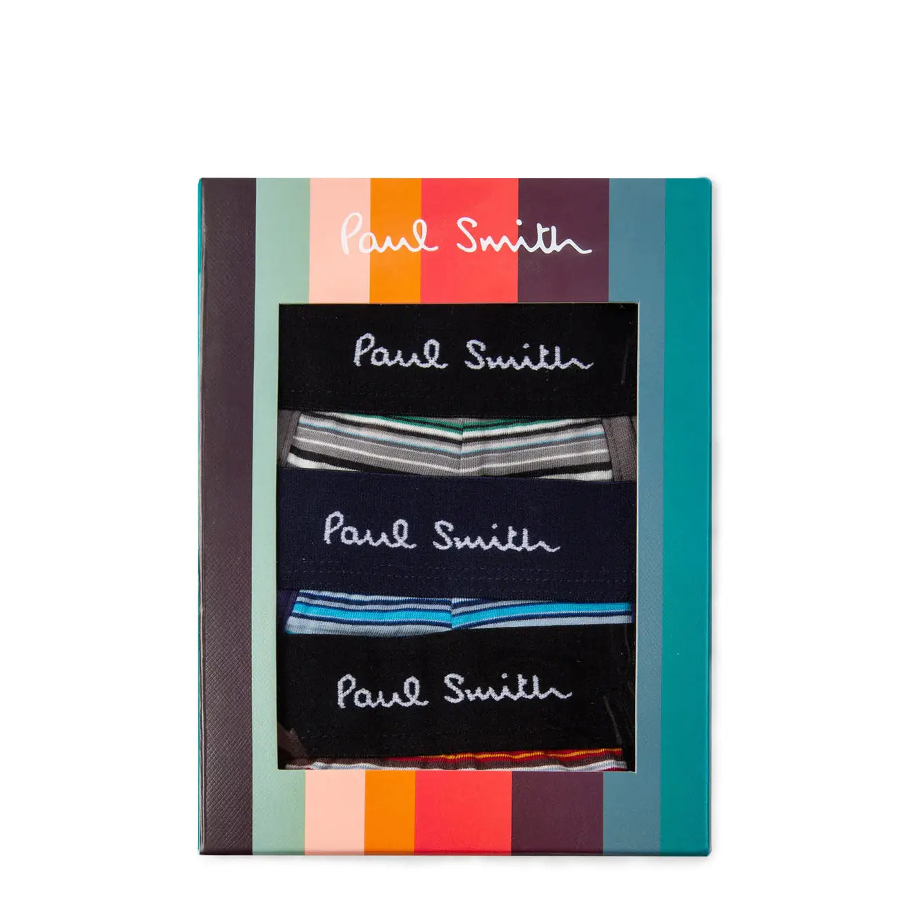 Men's three pack of boxer briefs in three classic 'Signature Stripe' colours. Complete with a Paul Smith signature logo waistband. Presented in an 'Artist Stripe' box.