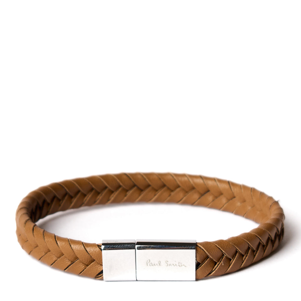 The Paul Smith Braided Leather Bracelet in Tan is crafted from high-quality braided leather, providing a stylish and textured look. Featuring a sleek silver closure embossed with the Paul Smith signature logo, this bracelet adds a refined touch to any outfit. Ideal for adding a subtle yet distinctive accessory to your wrist, it combines elegance with everyday wearability, making it the perfect finishing touch for both casual and formal styles.
