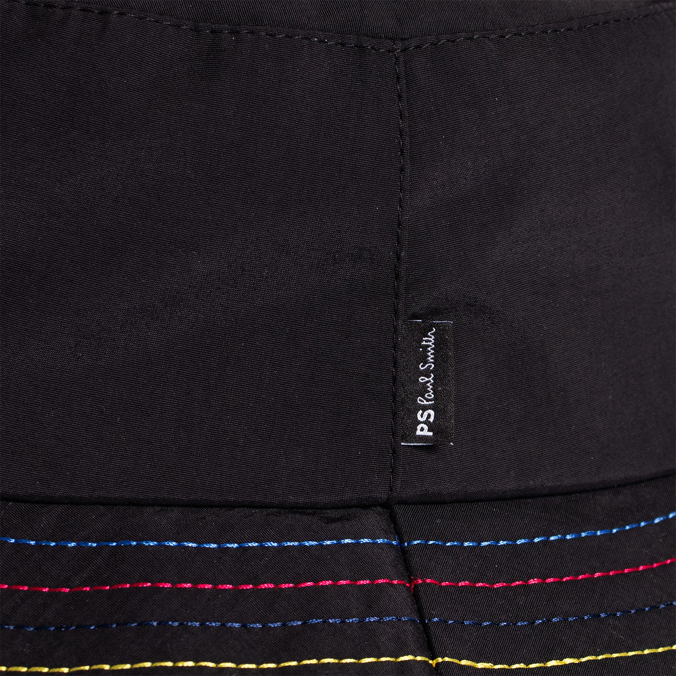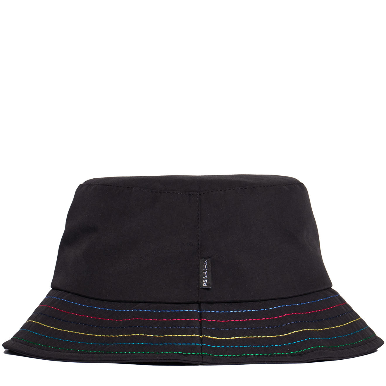 The Paul Smith Bucket Hat PS Stitch Black draws inspiration from the iconic bucket hats of the 1990s, expertly crafted from durable black nylon. Featuring a vibrant embroidered trim, it pays homage to the brand's bold logos. This stylish hat is also equipped with natural water-resistant properties, making it perfect for navigating the unpredictable British summer climate.