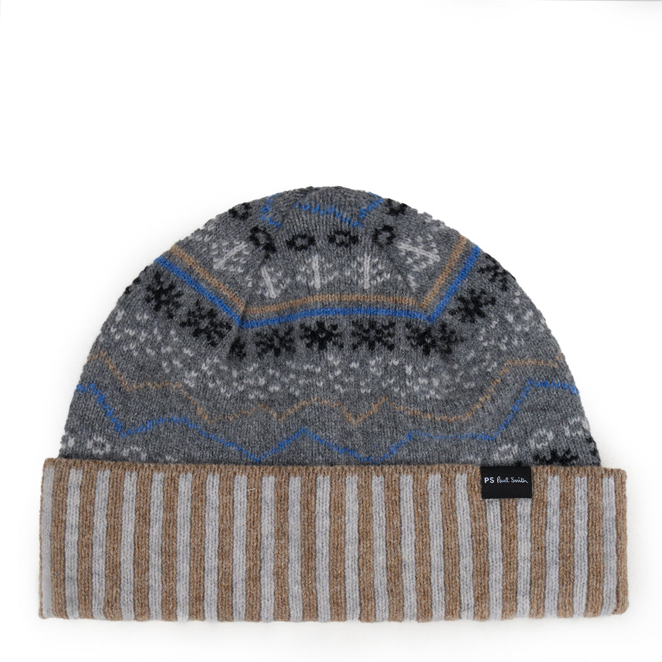 Paul Smith Doodle Fairisle Knitted Beanie Hat Navy