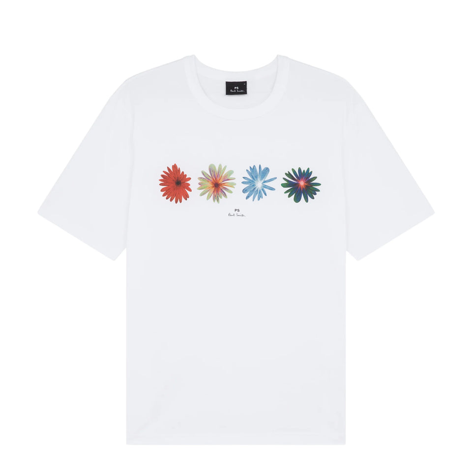 The Paul Smith Flowers T-Shirt in White is crafted from soft organic cotton for lasting comfort. Designed in a regular fit, it features a classic crew neck and short sleeves for everyday wear.
