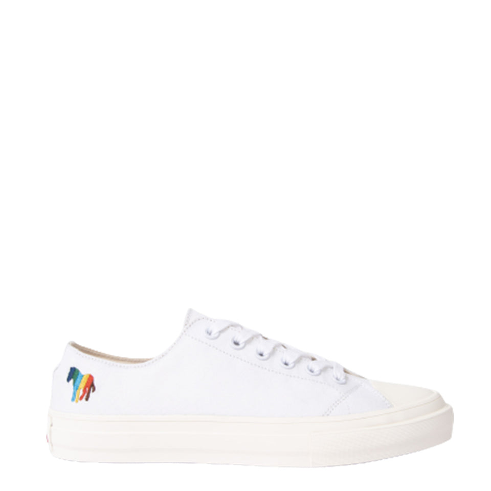 Made from 100% cotton canvas, these white 'Kinsey' trainers feature a classic design with tonal rubber soles and toe cap. Finished with an embroidered 'Broad Stripe Zebra' and colourful stripe rubber outsole - for a signature flash of colour.