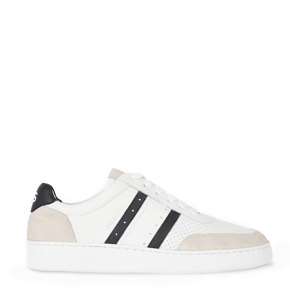 The White Paul Smith Leather Birch Trainers in White are crafted from high-quality leather and feature a striking perforated sidewall design. With their blown EVA outsoles, these trainers are lightweight and comfortable.
