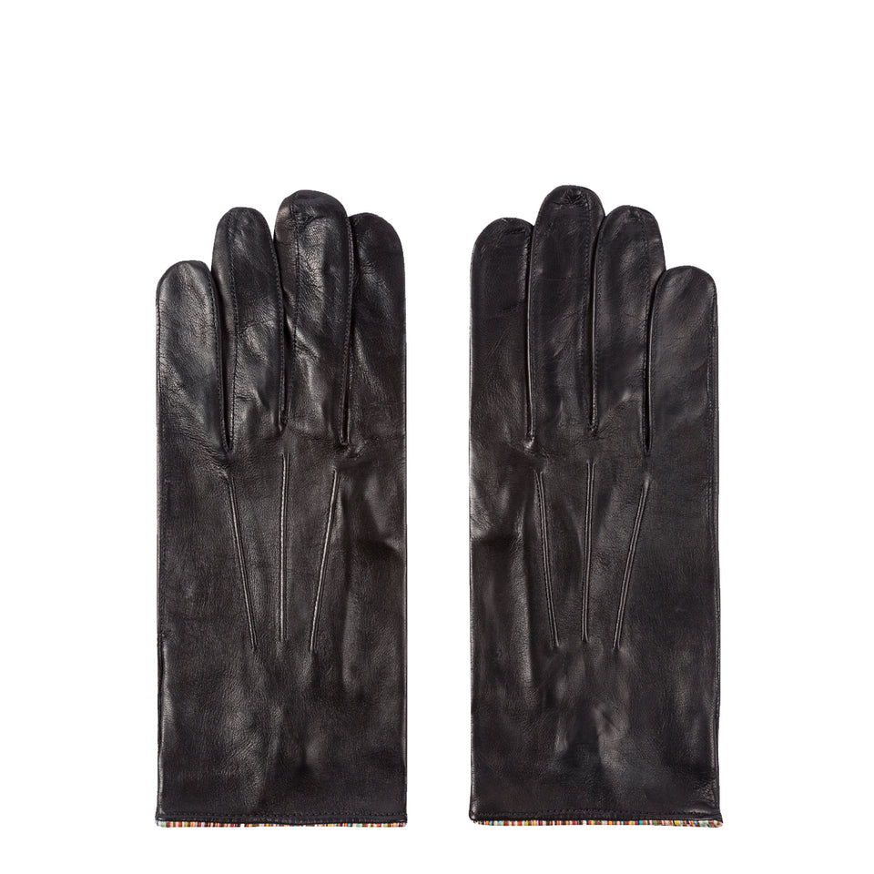 Paul Smith Leather Gloves With Signature Stripe Piping Black