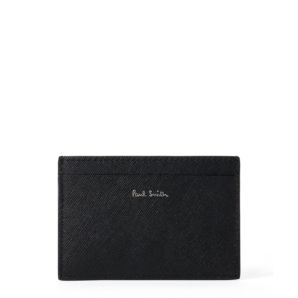 the Paul Smith Leather Pixelated Mini Card Holder in black offers a textured leather exterior with a playful pixelated interior print and practical card storage.