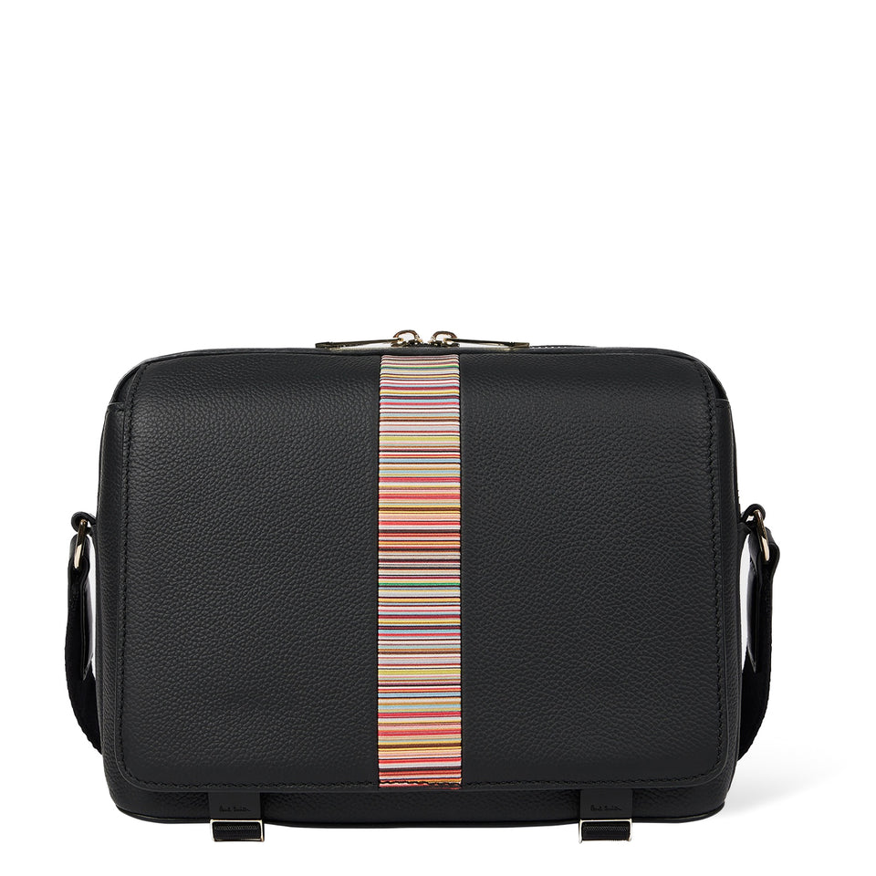 Paul Smith Leather Signature Stripe Trim Messenger Bag Black