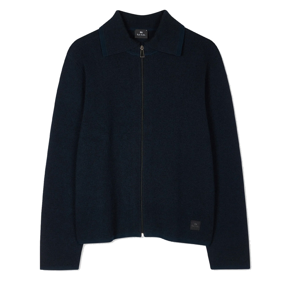 Paul Smith Navy Cotton-Blend Textured Zip Cardigan Navy