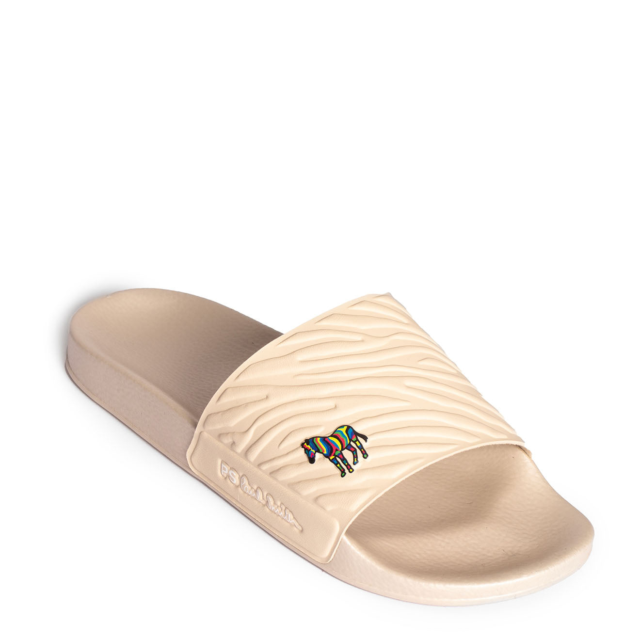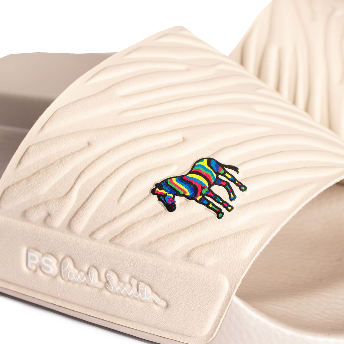The Paul Smith Nyro Zebra Sliders in Off White feature the brand's beloved zebra mascot on the strap, and a grippy patterned outsole, these sliders are perfect for all-day.