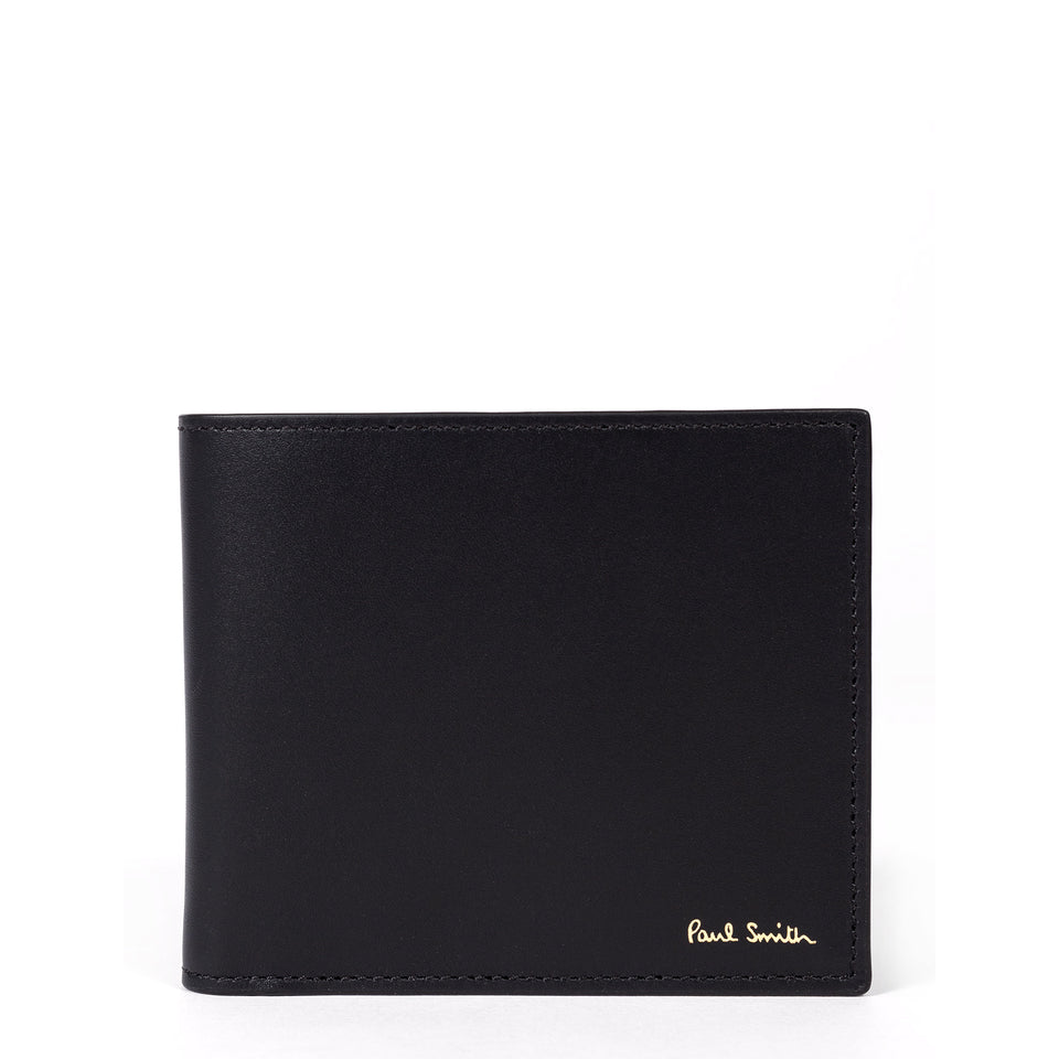 The Paul Smith Signature Stripe Billfold Wallet in Black is crafted in Italy from premium leather, featuring a textured 'Signature Stripe' interior for a bold, refined touch. This elegant wallet offers four card slots, a popper-fastening coin pouch, two additional compartments for extra storage, and a large section for notes and receipts. Finished with a gold foil embossed Paul Smith logo and presented in a black gift box, this wallet combines practicality with sophisticated style, making it the perfect accessory for everyday use.