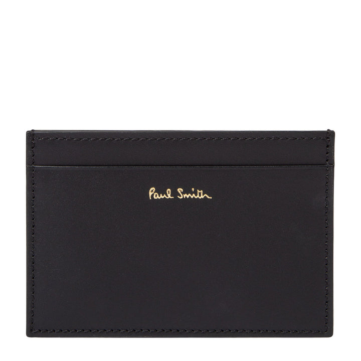 Crafted from 100% Italian leather, this black credit card holder boasts a classic 'Signature Stripe' design on its reverse and provides a spacious central compartment for storing folded notes or receipts. Black lining and an embossed Paul Smith signature logo enhance the piece, which is presented in a sleek black gift box.