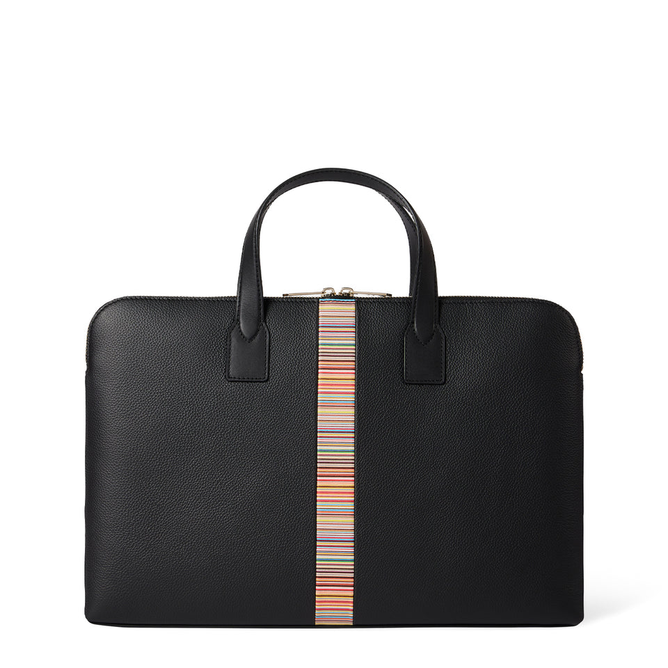 the Paul Smith Signature Stripe Slim Folio in black offers a streamlined leather design with Signature Stripe accents and practical dual-zip closure for everyday organisation.