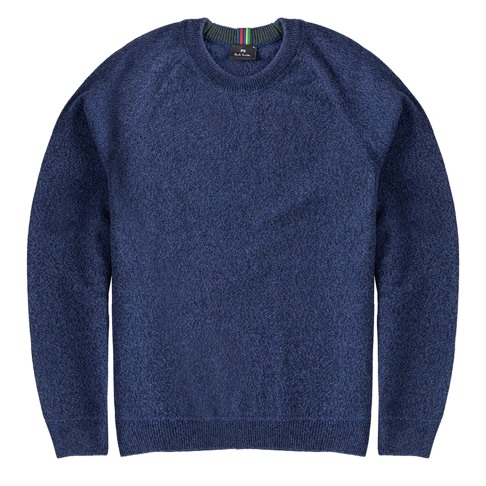 The Paul Smith Crew Neck Sweater in Indigo offers a refined yet contemporary update to autumn styling. Crafted from a rich indigo knit, it features subtle multicolored yarn woven throughout for added depth and character. Designed with a ribbed crew neckline, raglan sleeves, and ribbed cuffs and hem, this sweater delivers both comfort and effortless sophistication.