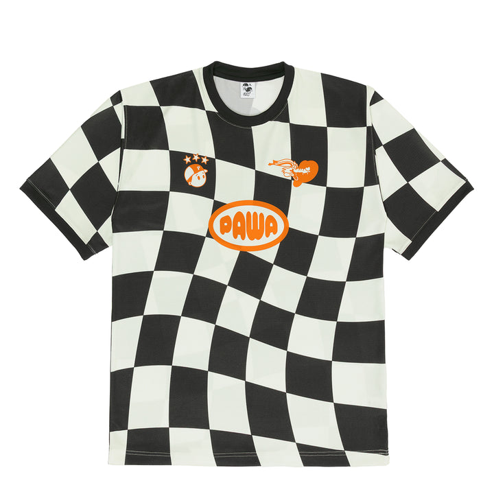 The Pawa Speed Sports Racing Football Shirt in multi reinvents the classic football kit with a bold wavy chequered design. Crafted from lightweight woven polyester, it’s decorated with multiple PAWA-inspired prints, including the signature logo on the front and back. Designed in a relaxed fit, this standout shirt adds a statement edge to any outfit.