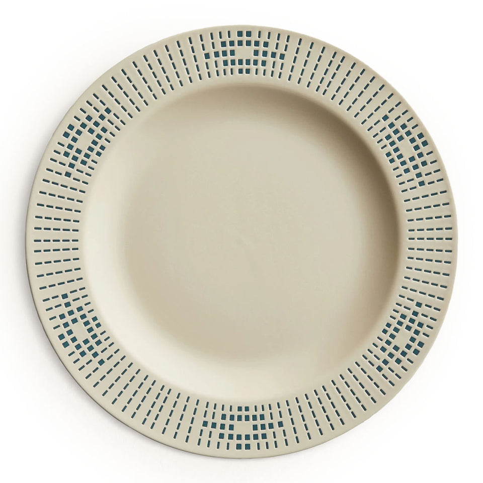 Bring the beauty of Pendleton to your table with their stoneware dinner plates. The Beaded Seashell pattern is achieved with a wax-resist technique and has a semi-matte glaze. Dishwasher and microwave safe.