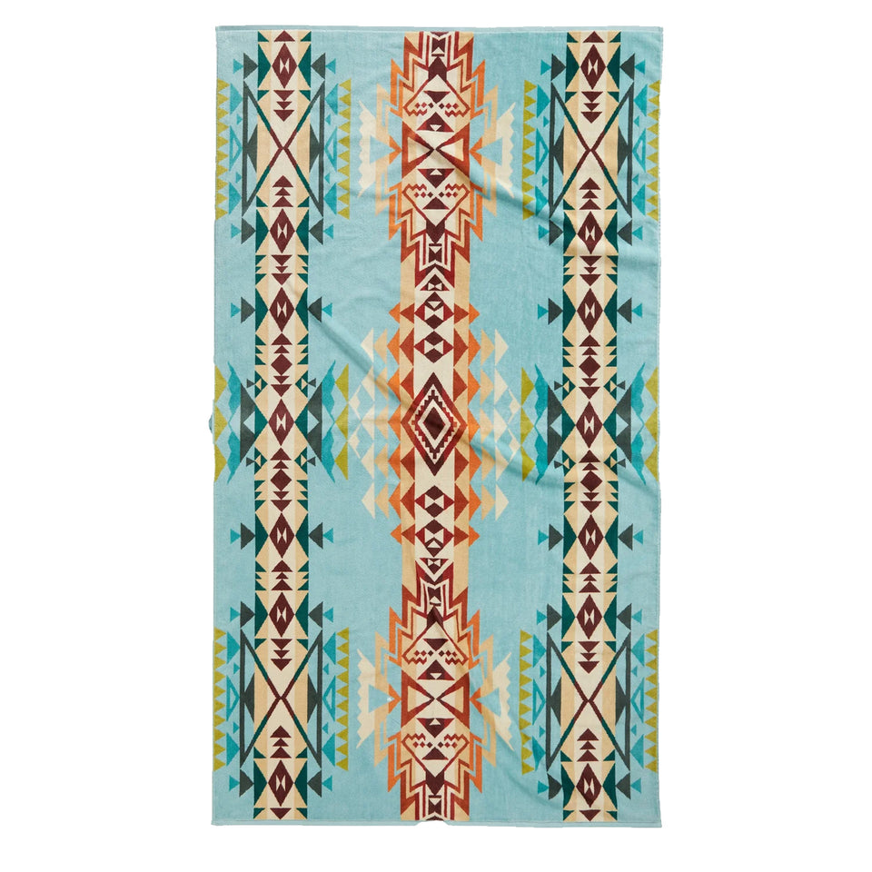 Pendleton Oversized Jacquard Spa Towel in Highland Peak Aqua. Recreating Pendleton's iconic blanket designs into super sized towels, which are perfect for the beach, poolside, hot tub or simply for the home.