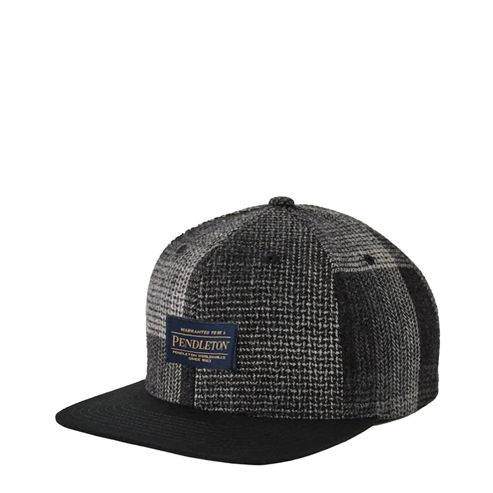 This Pendleton Patchwork Flat Brim Patchwork in Black showcases unique USA wool plaids to honour Pendleton's century of shirt-making. Built with sturdy interfacing, the hat keeps its form and features an adjustable snap-back closure.