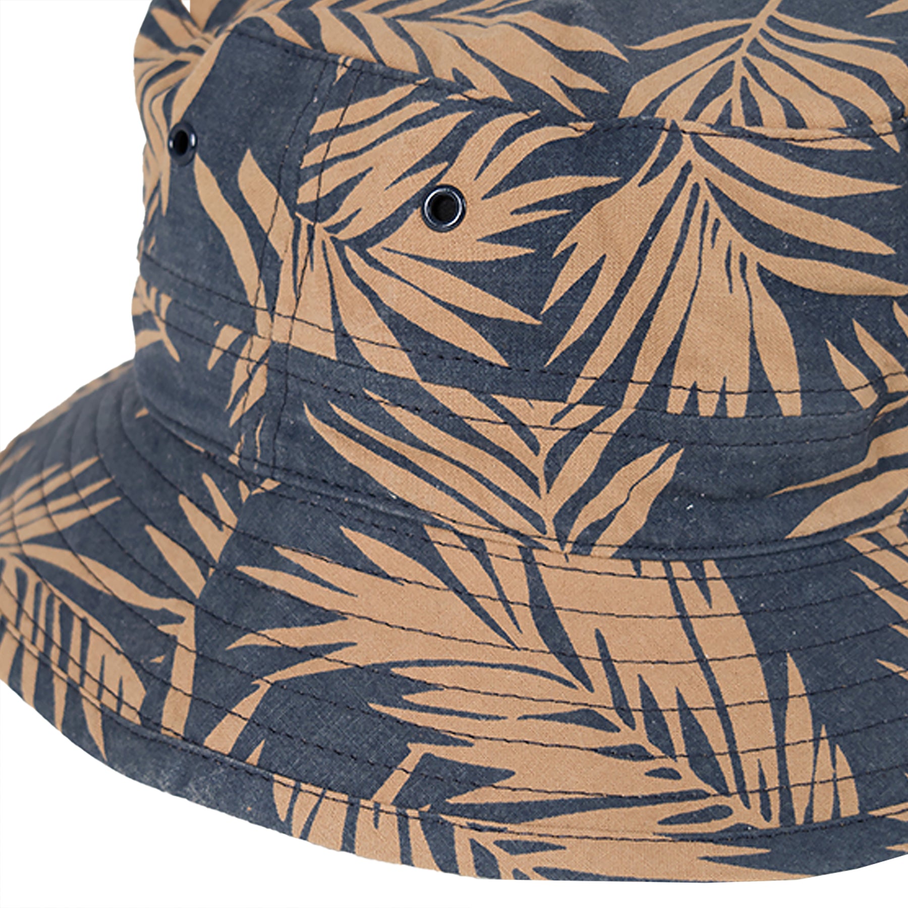 The Penfield Bucket Hat Multi is a bucket hat which displays a distinctive leaf pattern on a navy background. There is a Penfield label for signature branding and eyelets on the top to ensure breathability.