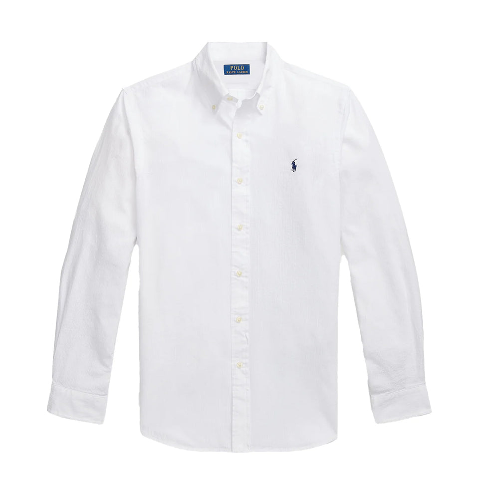 The Polo Ralph Lauren Button Down Custom Fit Shirt in White is crafted from lightweight, breathable cotton seersucker and features the signature embroidered Pony on the chest.
