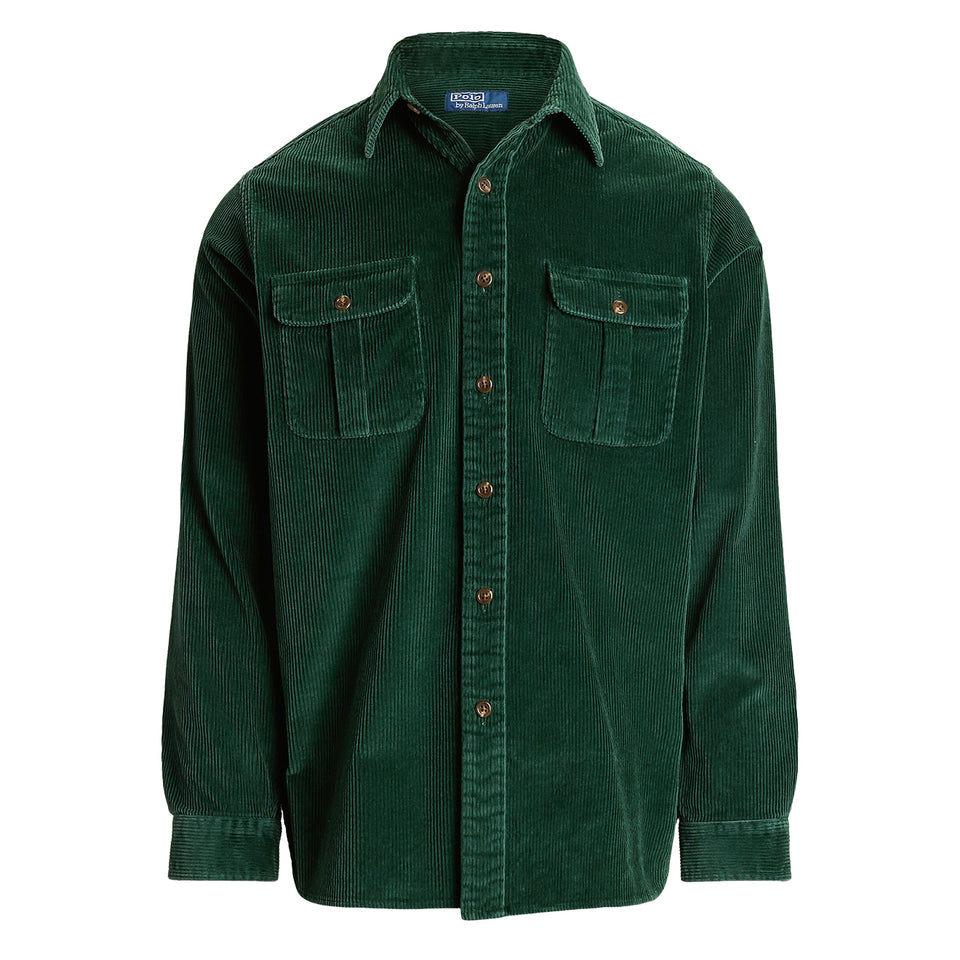 Polo Ralph Lauren Classic Fit Suede-Patch Corduroy Shirt Moss Agate