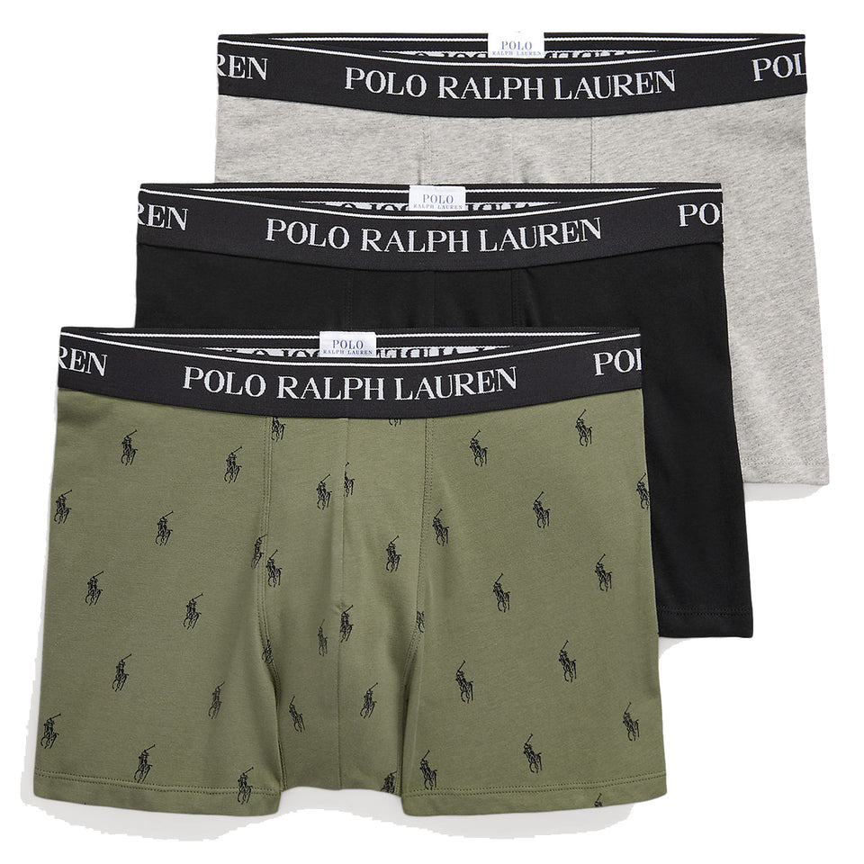 The Polo Ralph Lauren Classic Trunk 3-Pack in Garden Trail AOP, Black, and Andover Heather offers soft stretch-cotton trunks with a comfortable fit. Each pair features a branded elasticated waistband and a supportive front panel for everyday wear.
