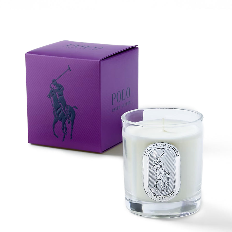 Housed in a glass vessel adorned with a metal emblem showcasing the signature pony and logo, this candle blends elegant design with a tranquil aromatic experience.