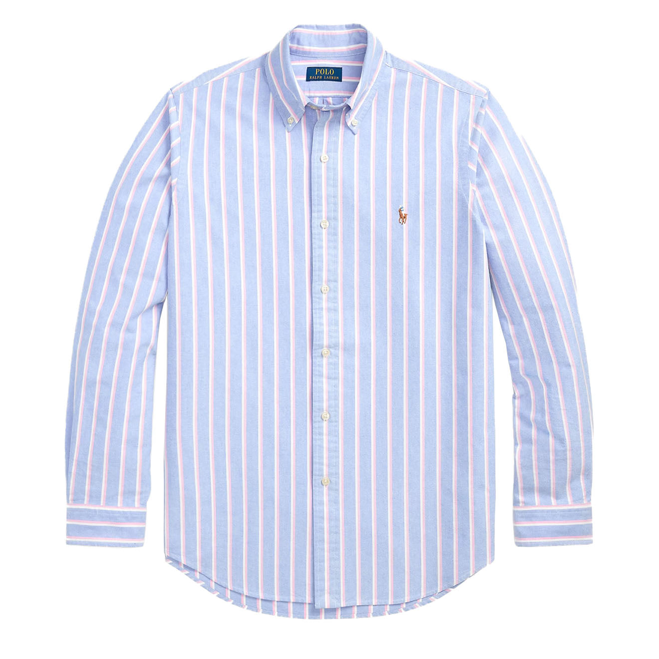 The Polo Ralph Lauren Long Sleeve Sport Shirt Custom in Blue and Pink blends heritage style with contemporary design. Crafted in a Custom Fit, it features a button-down collar, striped pattern, and the iconic multicoloured Pony embroidery for a polished, versatile look.