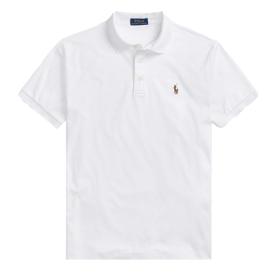 The Polo Ralph Lauren Pima Cotton SS Polo Shirt in White is a slim-fit version of the classic design, crafted from ultra-soft cotton interlock for a luxurious feel. It carries the iconic embroidered Pony and refined details that make it a timeless wardrobe piece.