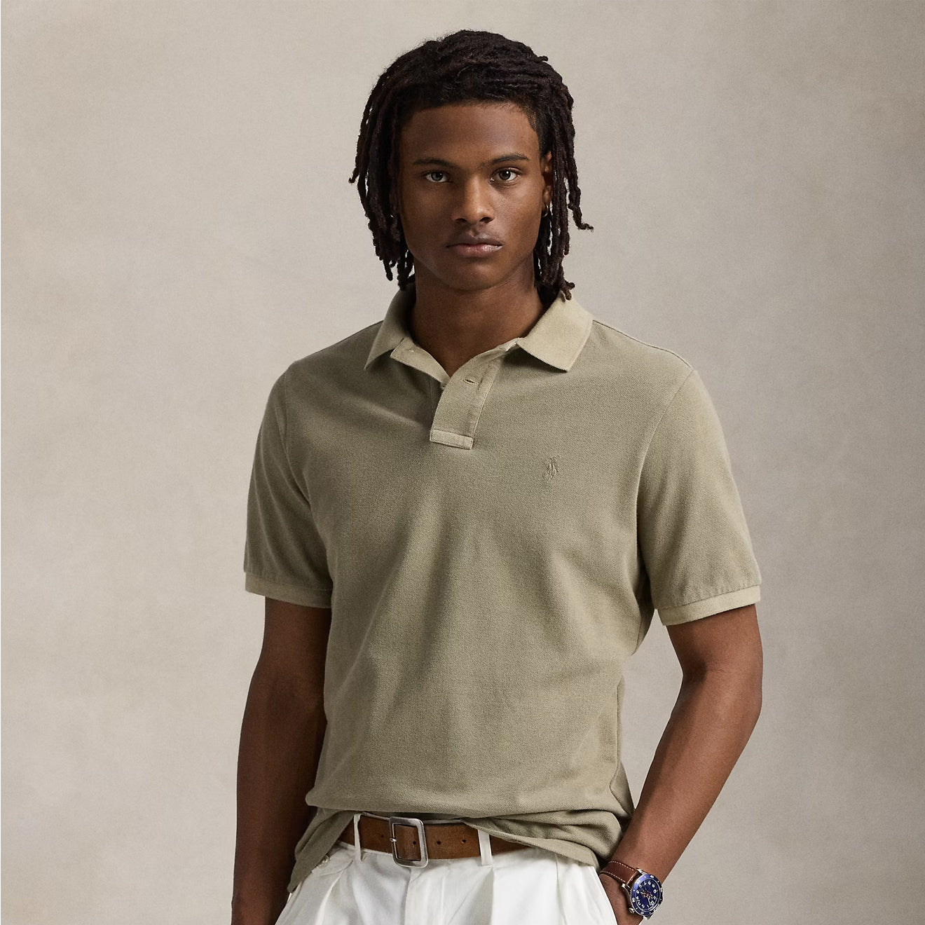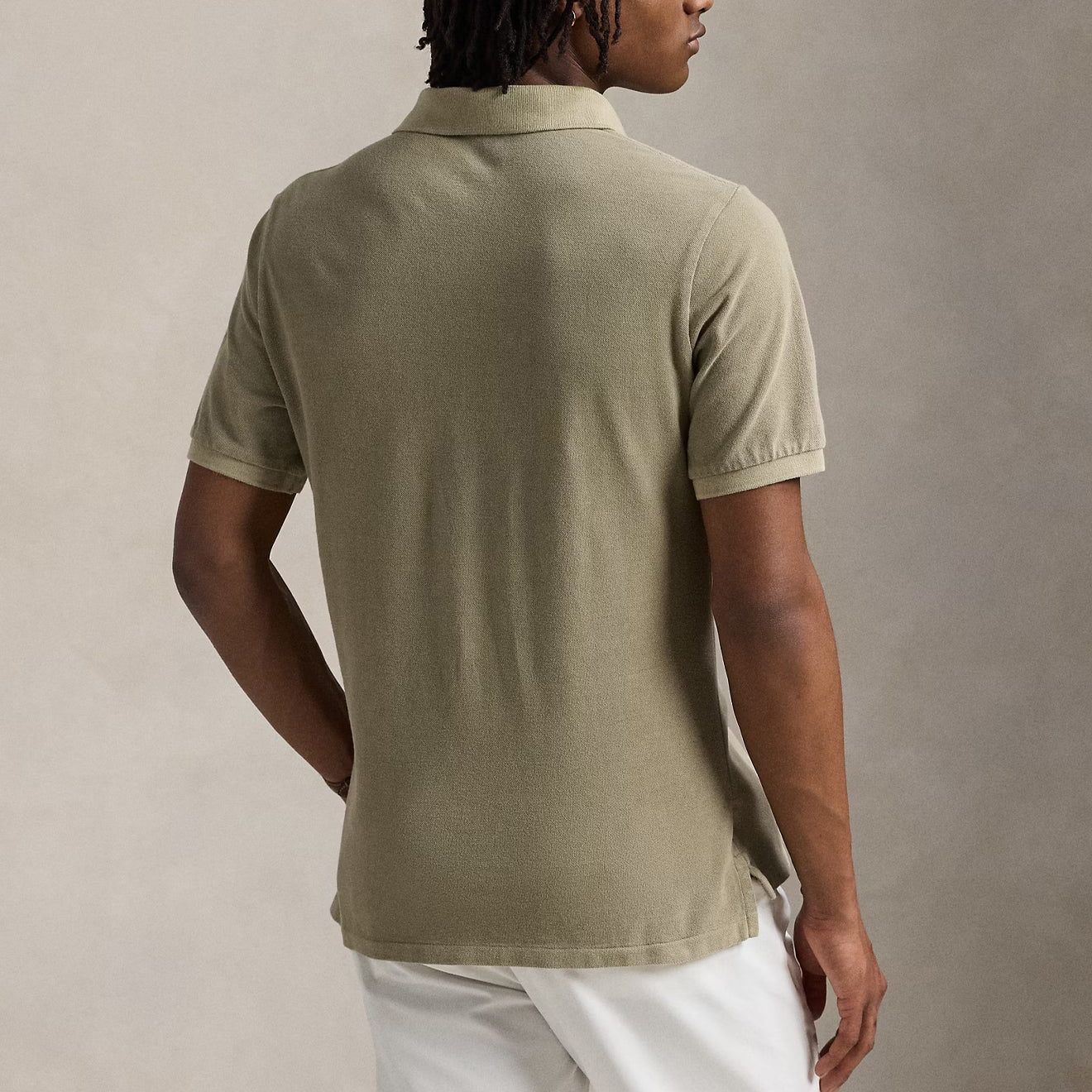 The Polo Ralph Lauren Short Sleeve Polo Shirt in Custom Slim Olive is made from soft cotton and garment-dyed for a rich, distinctive colour that fades over time. It features a tailored slim-fit silhouette with the iconic embroidered Pony, making it a versatile piece for smart-casual style.