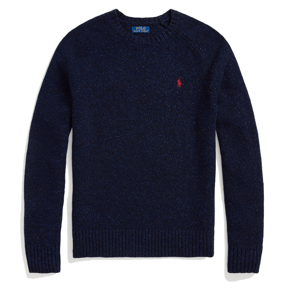Polo Ralph Lauren Speckled Wool Blend Crew Neck Jumper Ancient Navy Donegal