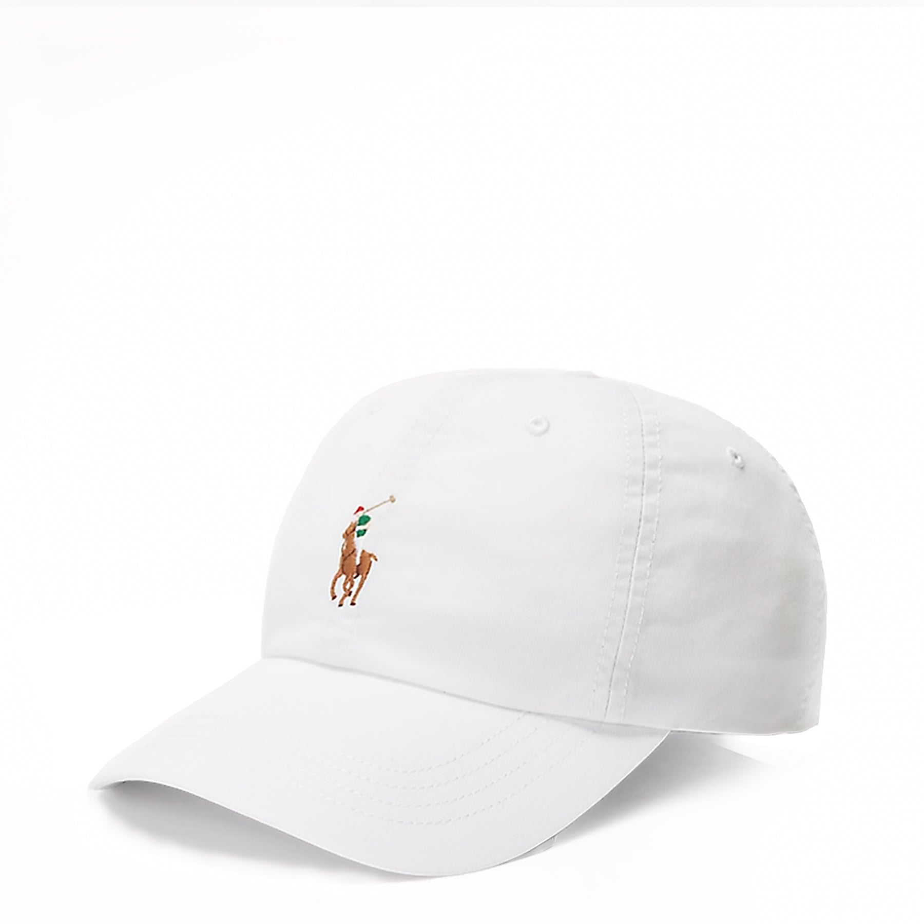 The Polo Ralph Lauren Sport Cap in Deckwash White is crafted from stretch-cotton twill for a comfortable fit and timeless style. Featuring Ralph Lauren’s multicoloured signature embroidered Pony at the front and a buckled leather strap at the back, this cap combines refined detailing with everyday wearability.