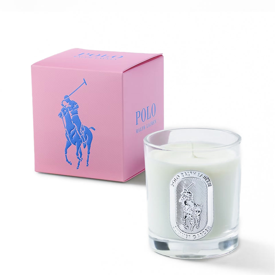 Presented in a glass vessel adorned with a metal emblem featuring the signature pony and logo, this candle offers a sophisticated design paired with a refreshing aromatic experience.