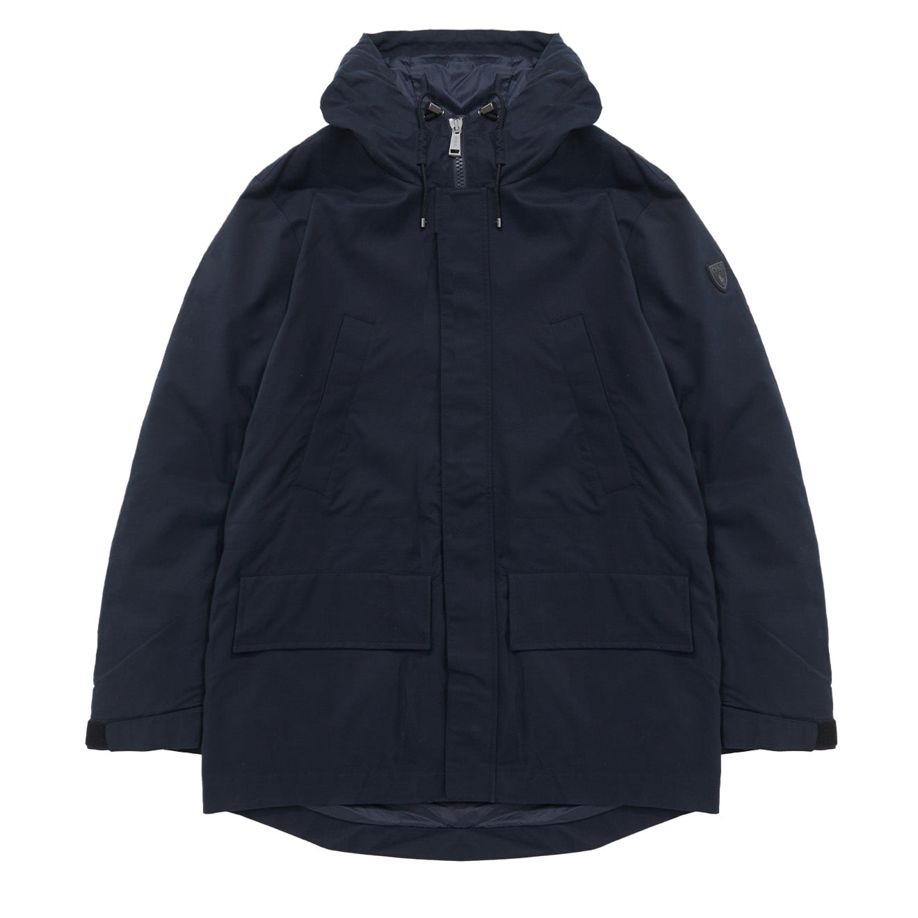 - Jacket hood with full-zip front and hook-and-loop storm placket