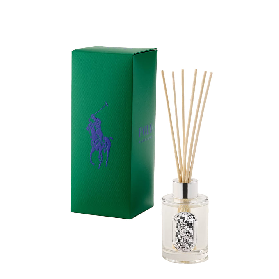 Encased in a glass vessel detailed with a metal emblem featuring the signature pony and logo, the diffuser combines stylish design with a long-lasting aromatic experience for continuous enjoyment.