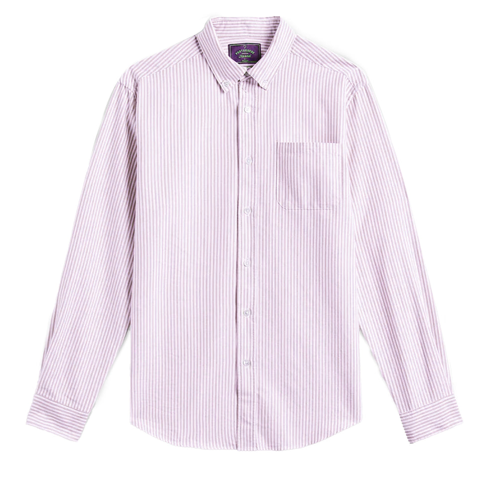 The Portuguese Flannel Belavista Stripe Long Sleeve Shirt in Bordeaux is made from 100% cotton for a soft, premium feel. Featuring shell of mother-of-pearl buttons and a classic striped design, this shirt offers timeless style with a refined, relaxed silhouette ideal for smart casual occasions.