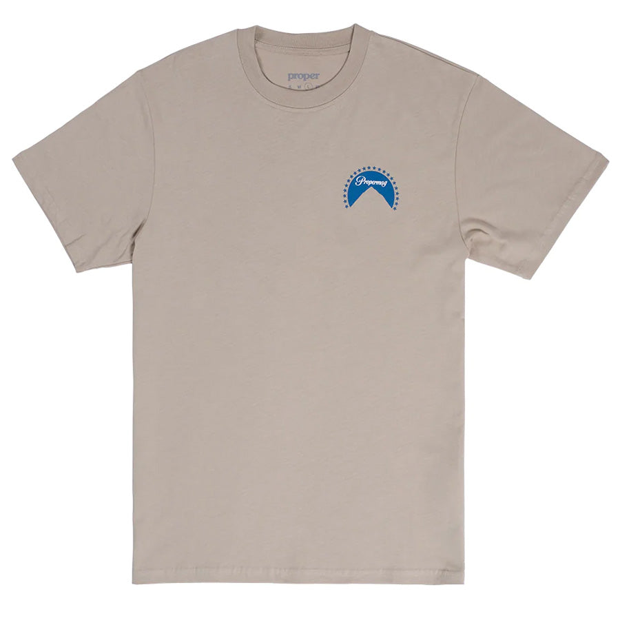 This Proper California T Shirt is a staple for any wardrobe. It is in the colour sand with a bright blue print on the front and back for a pop of colour. This T-Shirt is a regular fit. Proper recommend to size up if you prefer a roomy fit.