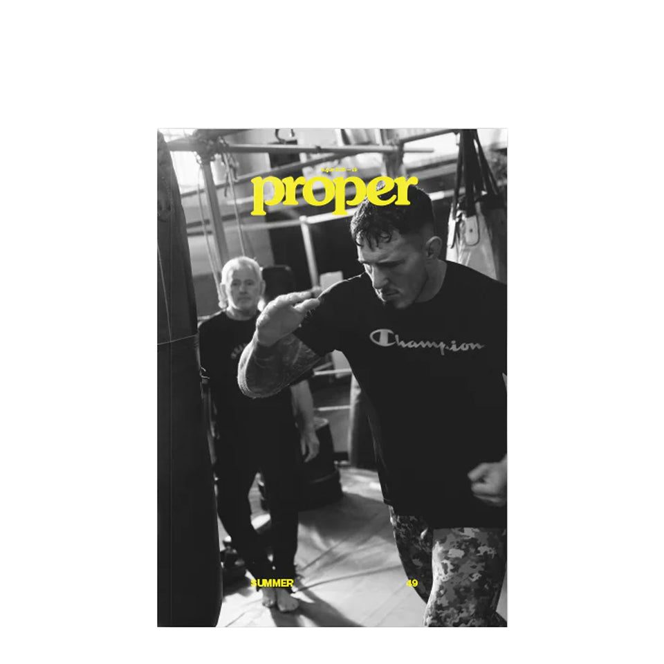The Proper Magazine Issue 49 explores the intersection of clothing, culture, and the outdoors. This slightly larger edition covers trail running, outdoor gear, fishing, and interviews with Lorenzo Osti, Tom Aspinall, and Nike ACG pioneers.