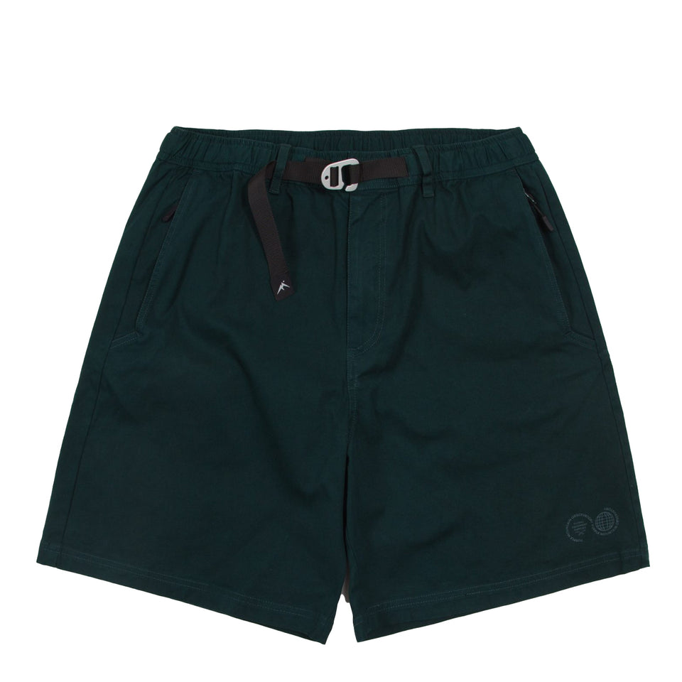 The Purple Mountain Observatory Trek Short in Pine Green is designed for versatility and durability on the trail or in the city. Made from sturdy cotton, it features a built-in adjustable belt for a custom fit, two spacious front pockets, and a secure rear zip pocket for essentials. Comfortable and practical, these shorts are perfect for hiking, trekking, or everyday wear.
