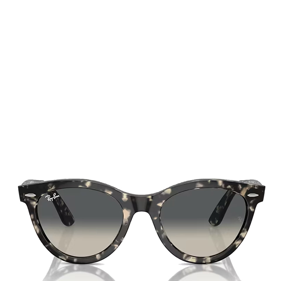 The Ray-Ban RB2241 133371 54 Wayfarer Way Sunglasses in Grey Havana / Grey Lens have a round frame which boast a polished grey Havana frame made from lightweight propionate, ensuring durability and comfort. The temples complement the frame in a matching grey Havana hue, adding a touch of sophistication. Ideal for everyday wear, the lenses offer both style and protection with a versatile grey shade.