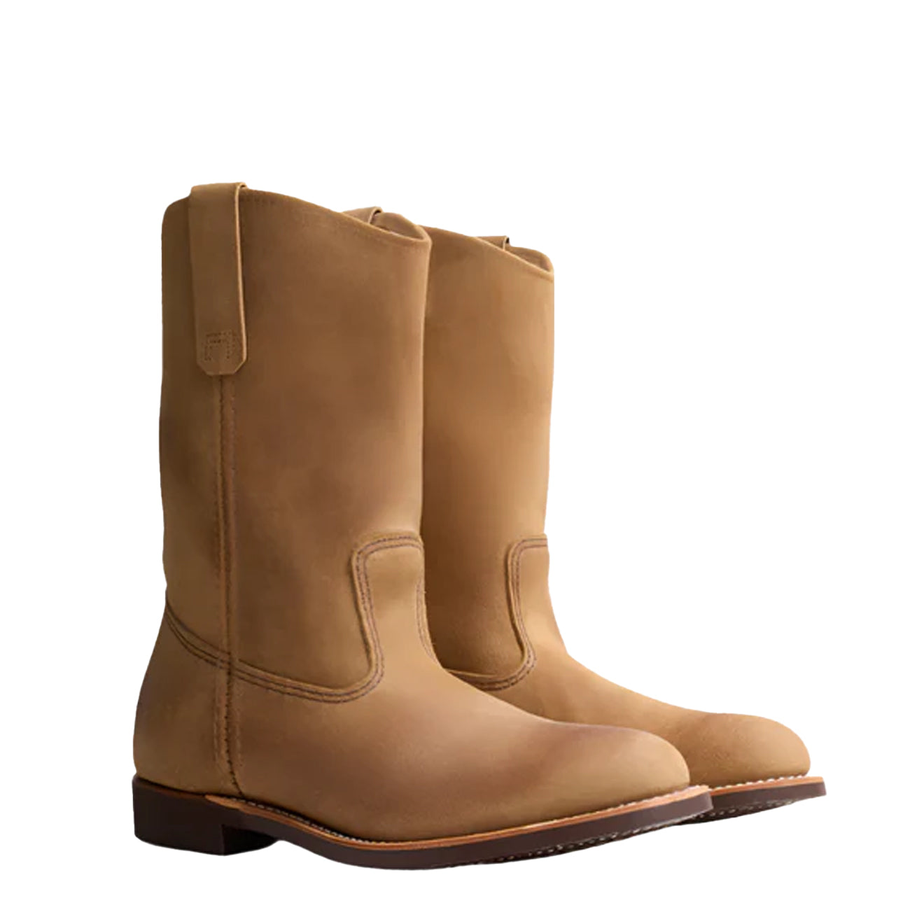 The Red Wing 11-Inch Pecos Soft Toe Pull-On Boots in Hawthorne Muleskinner celebrate timeless craftsmanship. Constructed with rugged rough-out leather and a sturdy Goodyear welt, they blend Western heritage with dependable utility. A Brown Chemigum outsole, leather insole, and steel shank deliver balance, comfort, and durability in equal measure.