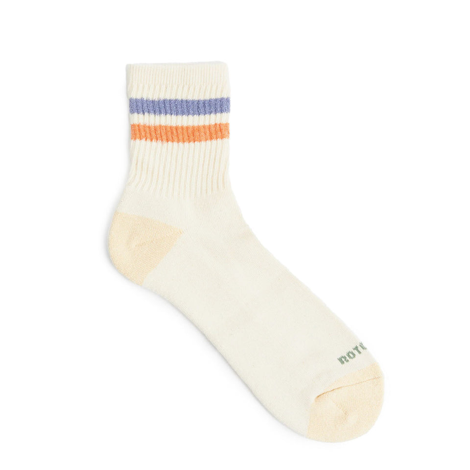 Crafted in Japan, the RoToTo Two Stripe Socks in Blue / Orange combine comfort and retro style. Made from a soft cotton blend, these ankle socks exude a vintage athletic vibe, featuring bold decorative stripe details and branded accents. The cosy ribbed texture enhances comfort, making them perfect for all-day wear, whether you're lounging at home or out and about. These socks are an ideal choice for adding a touch of nostalgic flair to your wardrobe.