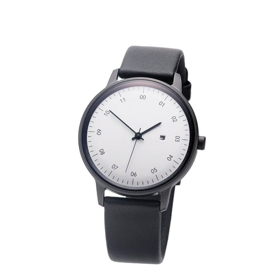 Sazare 38mm Black Honing Finish Watch Black Leather