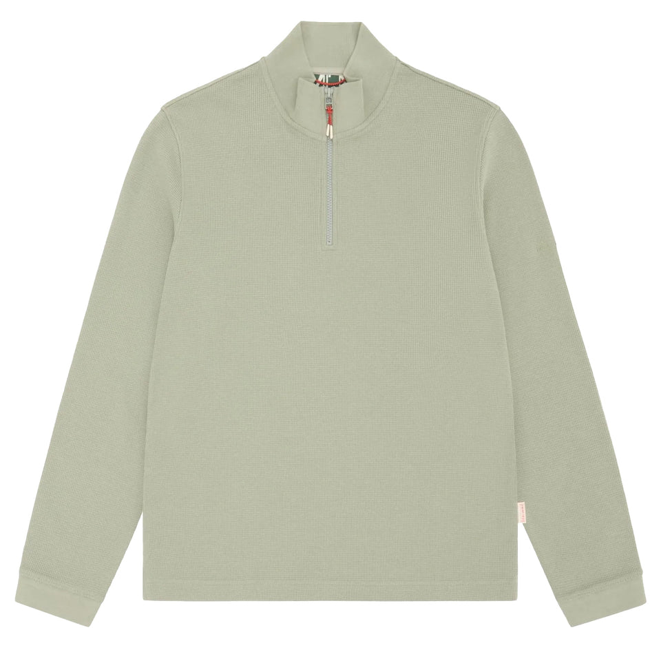The Sealskinz Forncett Long Sleeve Top With Half Zip in Green is a long sleeve quarter zip in a soft waffle knit. Made from 100% organic cotton. Long sleeves for colder evenings. A classic men’s pullover.