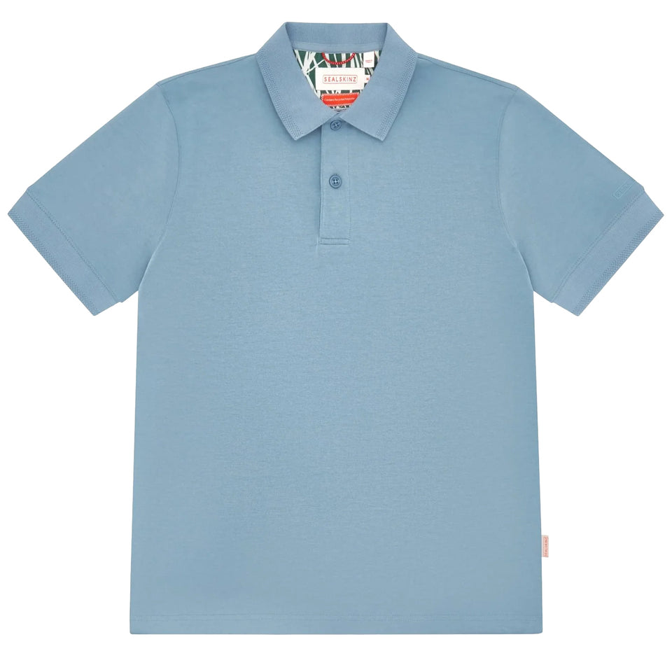The Sealskinz Roydon Soft Touch Polo in Blue is a buttoned Polo Shirt. The fabric blend is soft-touch and quick drying. Hidden zipped seam pocket for miscellanies. A classic men’s polo shirt for spring and summer months. Recycled stretch polyester is planet friendly. Due to the unique peachy finish of polo shirt, garment may arrive with light impression marks. This is completely normal and will disappear when washed.
