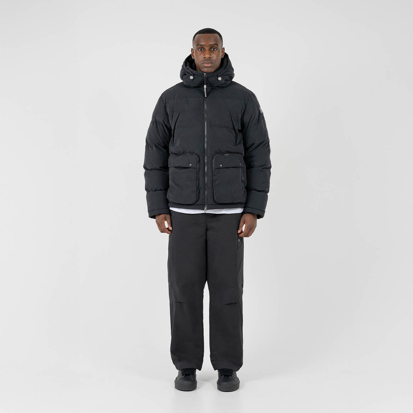 The ST95 Arno Down Coat in Caviar combines technical performance with contemporary design. Made from a lightweight 92% polyester, 8% nylon blend, this coat features a soft peached finish and water-resistant coating. This product in this colour is cut to a relaxed fit and includes Arctic-inspired front pouch pockets, two hand pockets, a YKK double zip closure, and adjustable drawcords at the hood, hem, and cuffs. Finished with the signature ST95 globe patch on the left sleeve.