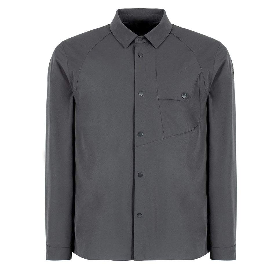 The Frattina shirt is constructed of recycled fabrics that have passed through aero wash treatments to create a light smooth texture. The shirt features an off-centre, set-in chest pocket with branded snap fastenings. A snap button closure runs up the length of the shirt alongside fully adjustable snap cuffs. ST95 globe branding can be seen on the left shoulder.
