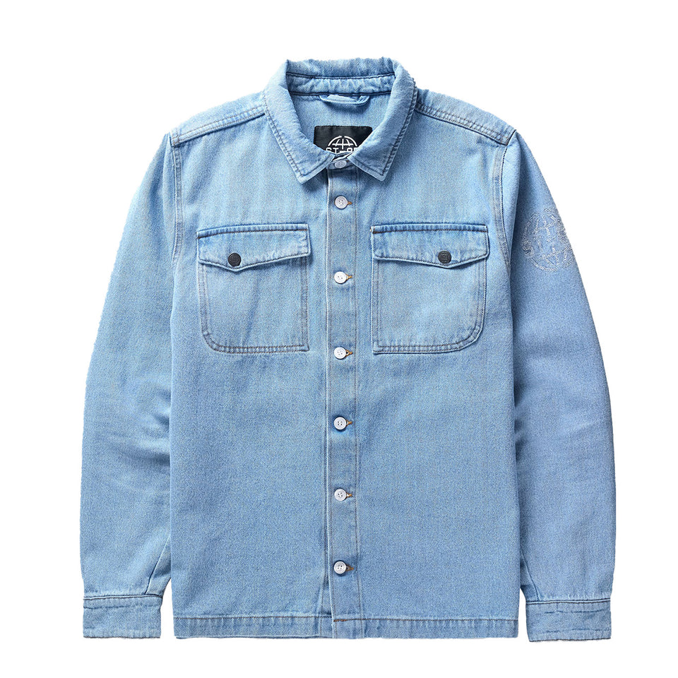 The Misa Denim Shirt continues ST95’s introduction of denim, offering a versatile piece cut to a regular fit. Crafted from 13oz (400GSM) denim in an 80% cotton, 20% recycled cotton blend, the shirt balances durability with a considered approach to fabrication. Designed with two chest pockets and finished with a tonal embroidered globe logo on the left bicep, it reflects classic workwear influences through the lens of ST95’s contemporary design language.