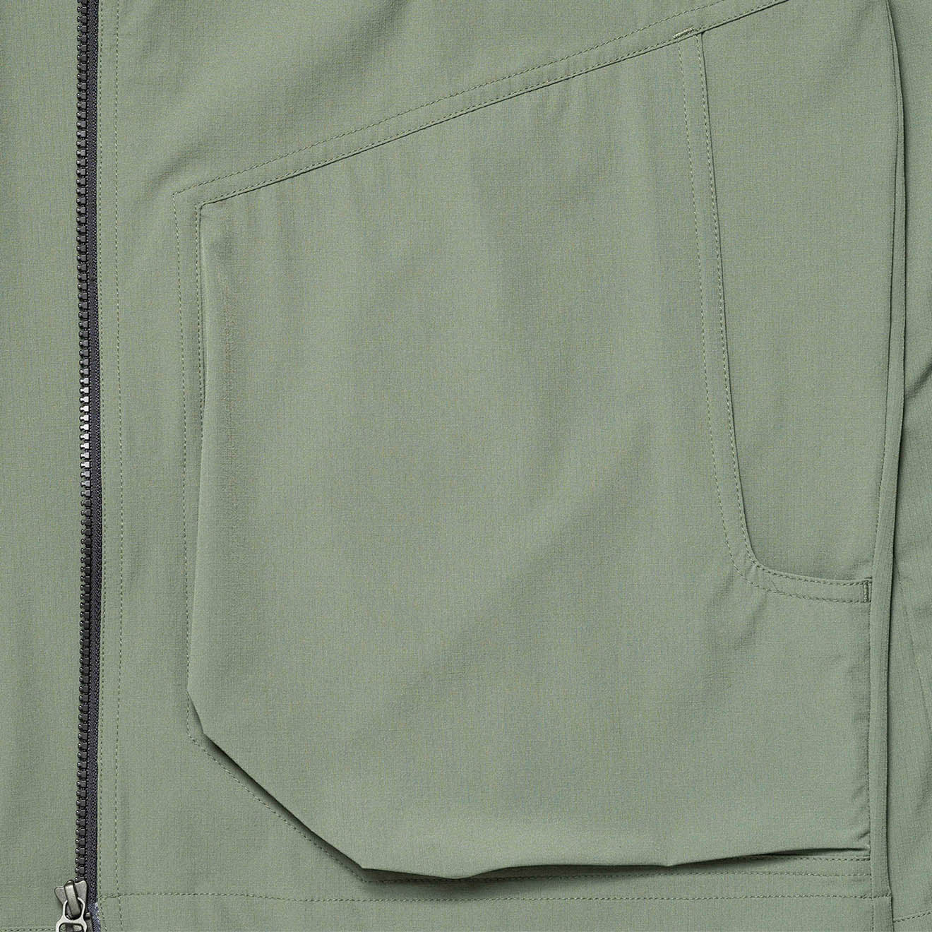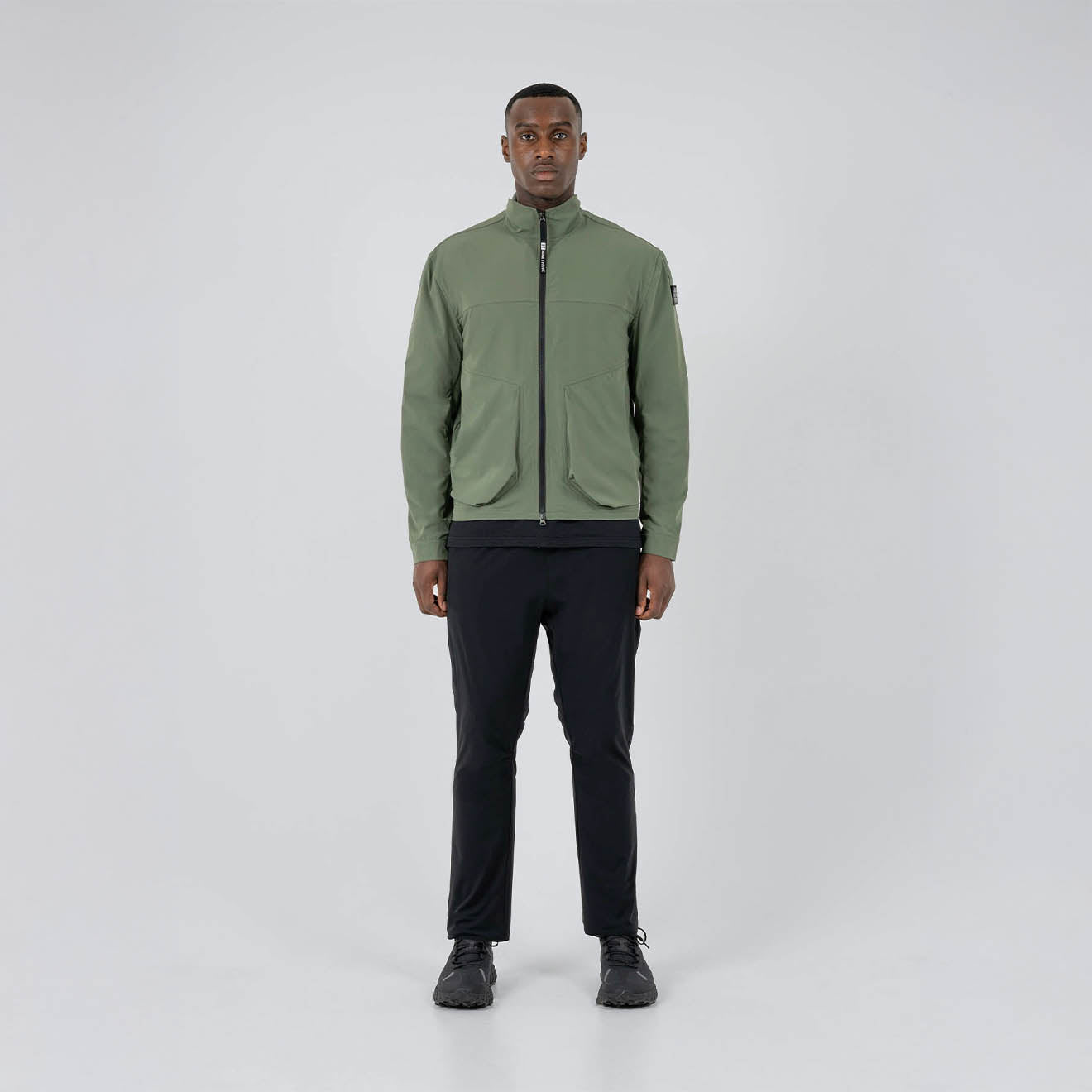 The Moro Overshirt merges classic utility with modern technical performance. Constructed from a 90% nylon, 10% spandex blend for durability and stretch, it features a full-zip stand collar and a water-resistant finish. Designed for function, it includes bellowed hand pockets, YKK double zips, and branded snap fastenings, while the ST95 globe patch on the left shoulder underscores the brand’s heritage in contemporary outerwear.