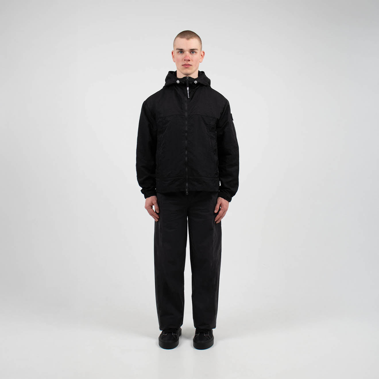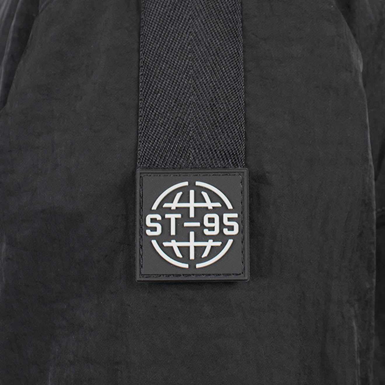 The ST95 Nera Jacket in Caviar is a midweight, water-resistant jacket made from 100% nylon. This product in this colour features a subtle metallic sheen and this product in this colour has a relaxed fit with central front panel pockets, a YKK double zipper, adjustable hood and cuffs, and the signature ST95 globe patch on the left shoulder.
