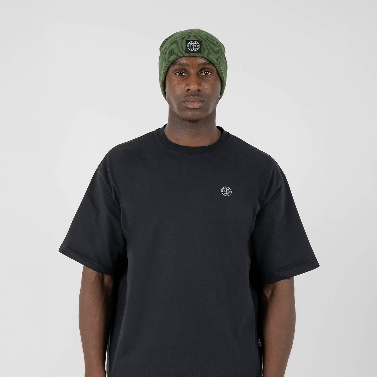 The ST95 Nucleo Beanie in Caviar is a warm and durable cold-weather essential. This product in this colour features a classic fold-over design and this product in this colour includes a rounded crown for a comfortable fit and a central ST95 globe patch logo on the front.