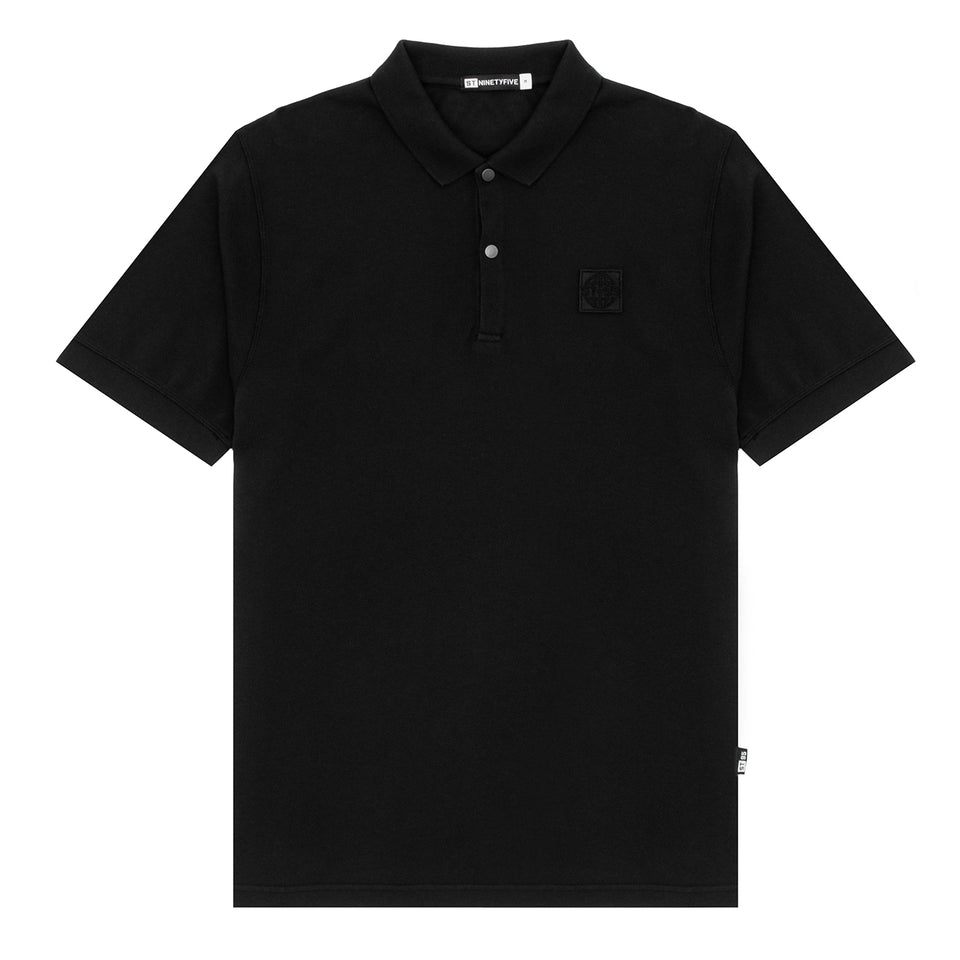 The ST95 SS Nucleo Stella Polo in Black offers a regular fit with a slim two-button placket for a refined look. It features the ST95 globe patch on the front left chest and is crafted from soft organic piqué fabric. The polo is garment dyed by our certified dye house and includes a branded side tab on the inside seam.